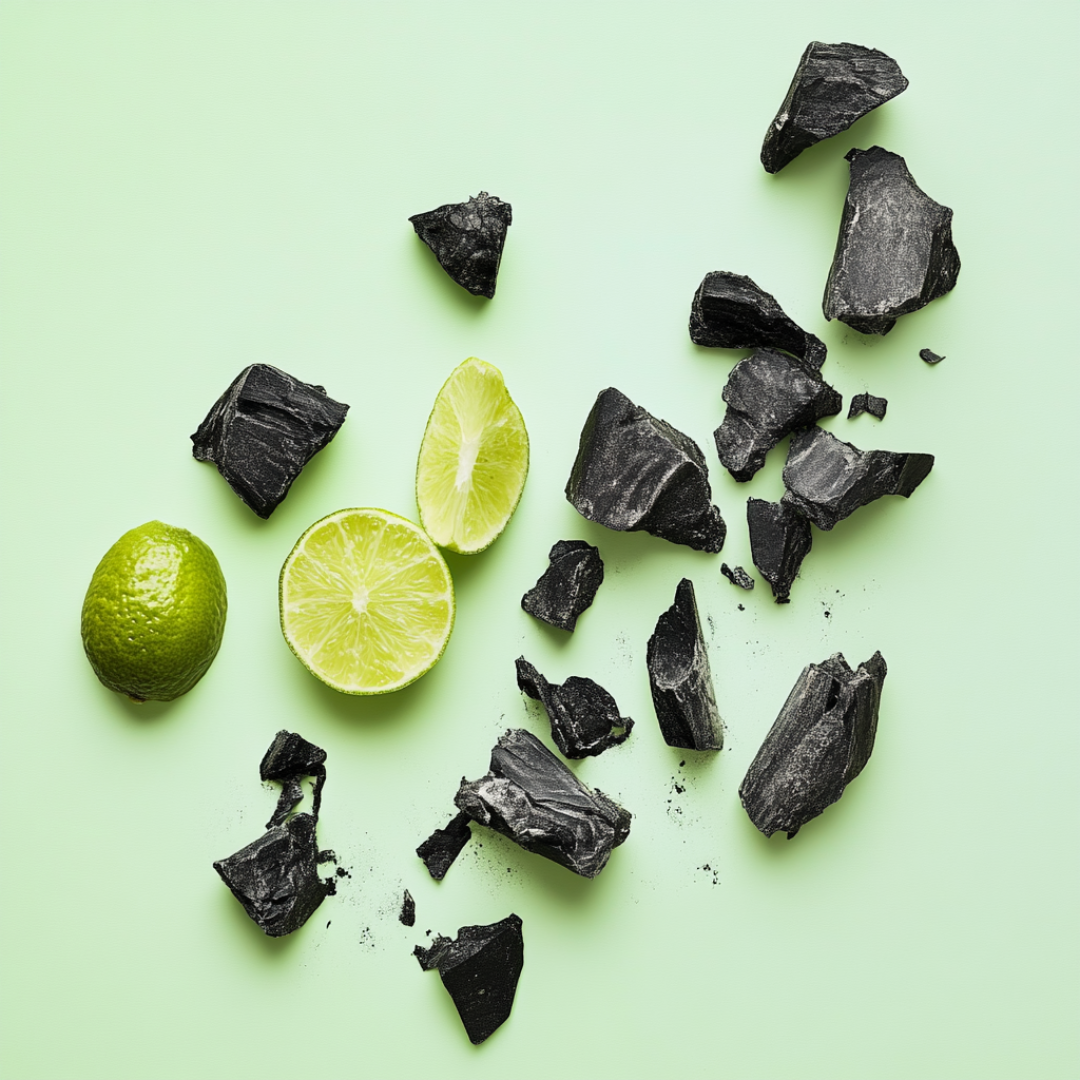 Sodium cocoate, Sodium rapeseedate, Aqua, Sodium shea butterate, Rosmarinus officinalis (rosemary) leaf oil, Citrus aurantifolia (lime) peel oil, Charcoal powder, Limonene*, Citral*