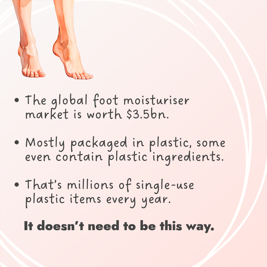 The average person walks 115,000 miles in their lifetime, putting constant pressure on their feet. So it’s no surprise the global foot cream/lotion/serum market is booming, already worth $3.5 billion in 2024 and set to more than double by 2032. But there’s a problem: most foot creams come in plastic tubes and tubs, adding to the billions of single-use plastics piling up in landfills. To add insult to injury, many formulas are packed with petroleum-based ingredients, synthetic fragrances, and silicones that do more harm than good - not just to your skin, but to the planet too.
